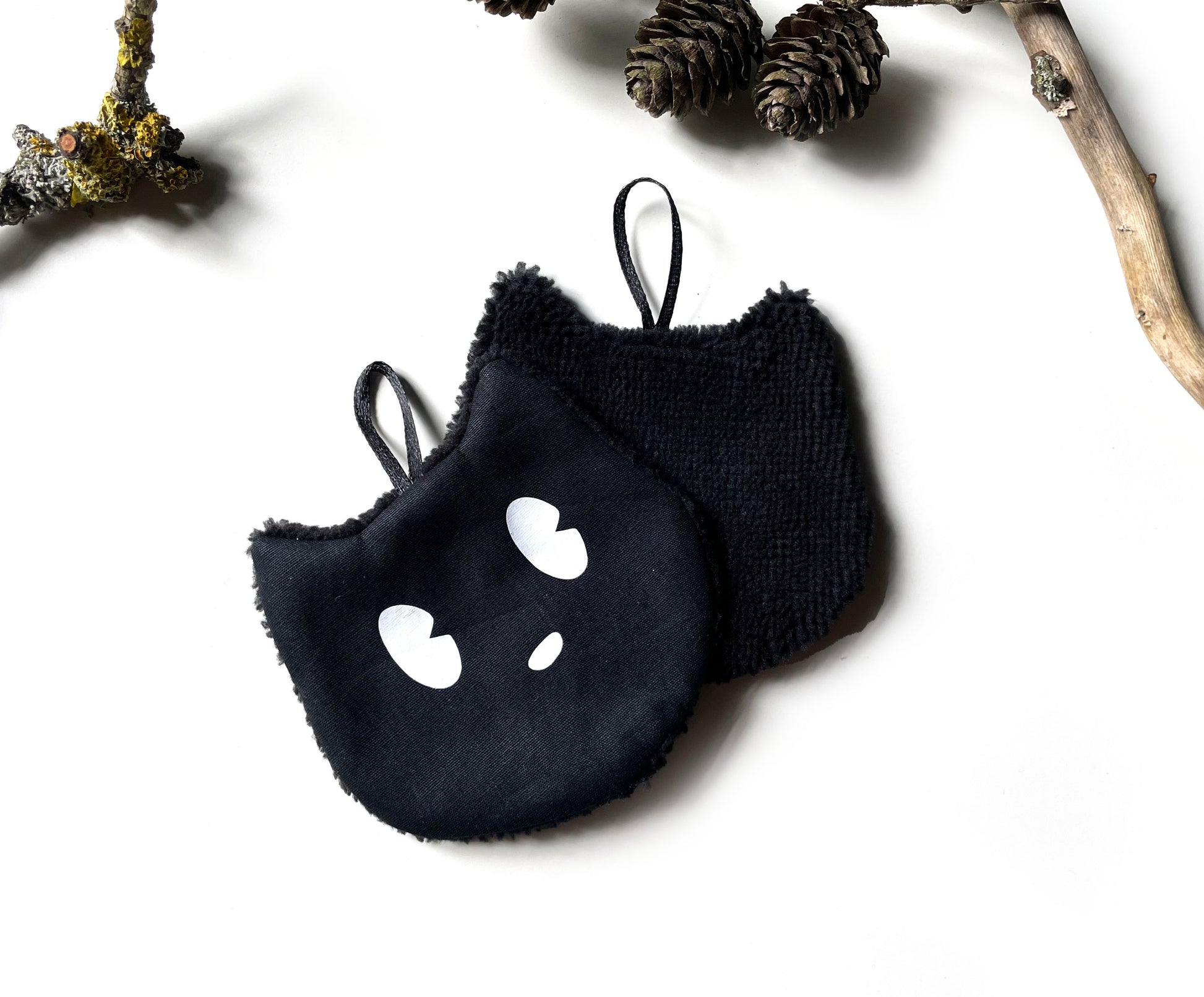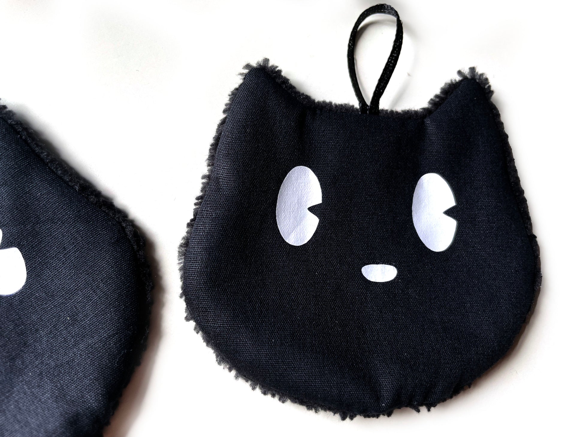 - eine Seite glatte reine Baumwolle in Form kleiner schwarzer Katzen mit aufgedruckten Augen. Ideal zum Auftragen von Toner oder zum Korrigieren von kleinen Schminkunfällen