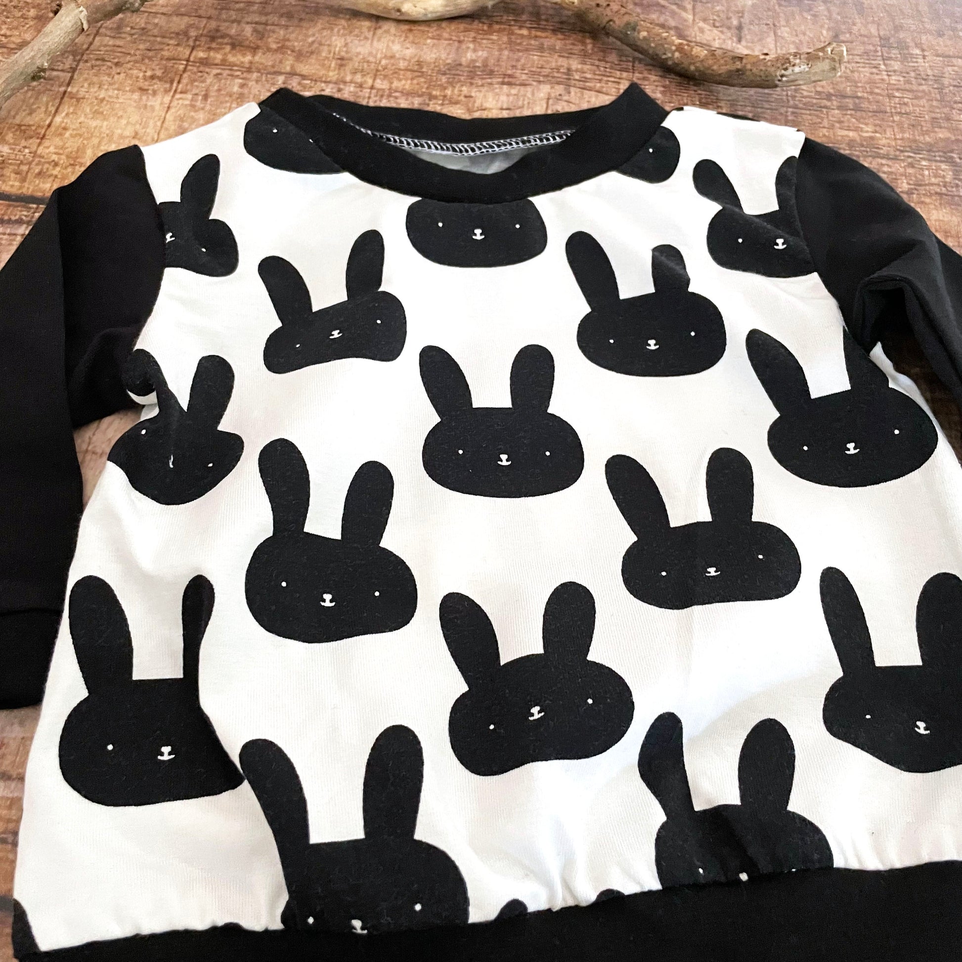 Baby Langarmshirt Hasen schwarz weiß 62/62