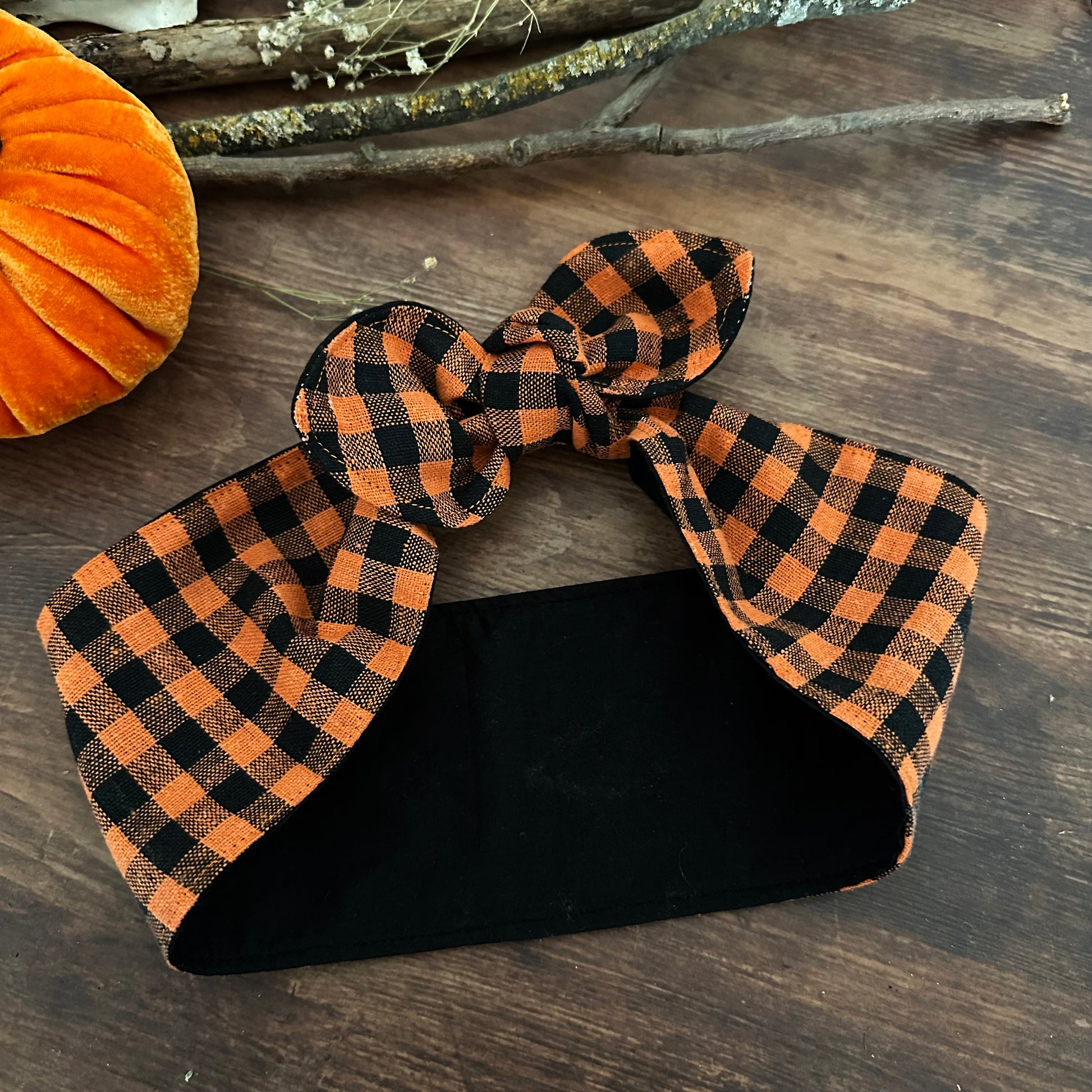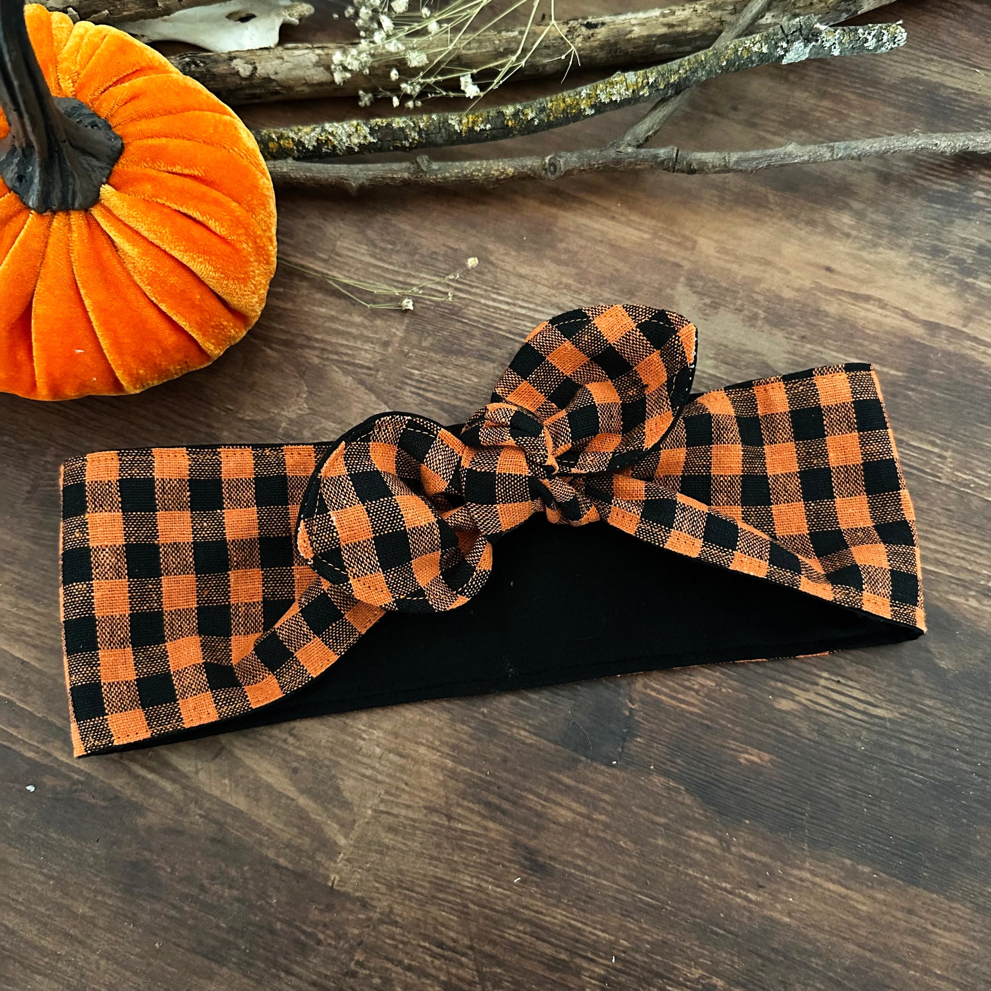 Herbstliches Haarband in stylischem Karolook in orange und schwarz.