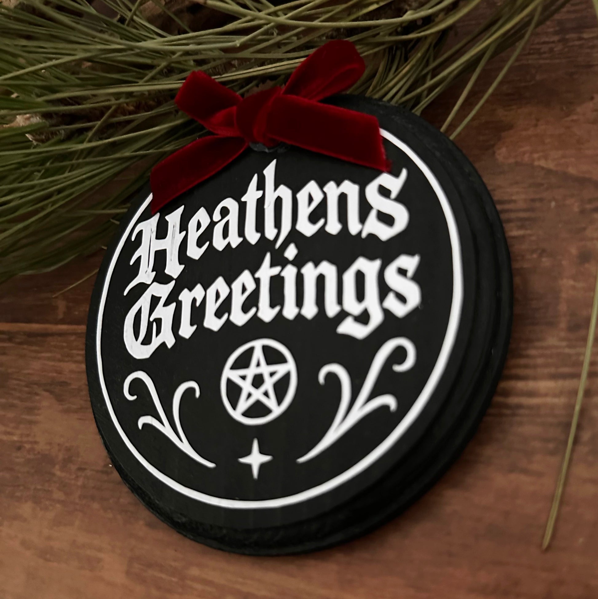 Dieses kleine Heathens Greetings Holzschild ist die perfekte Ergänzung für alle, die Yule, Creepmas oder winterliche Hexen-Ästhetik feiern.