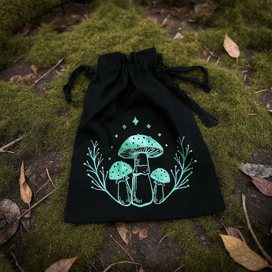 Dieser wunderschöne Beutel ist perfekt für alle, die gerne magische Funde aus der Natur sicher aufbewahren möchten. Ob du Kräuter sammelst, Tarotkarten transportierst oder einfach einen stilvollen Aufbewahrungsbeutel brauchst – dieses Design vereint Ästhetik und Funktionalität. 🌙🍄